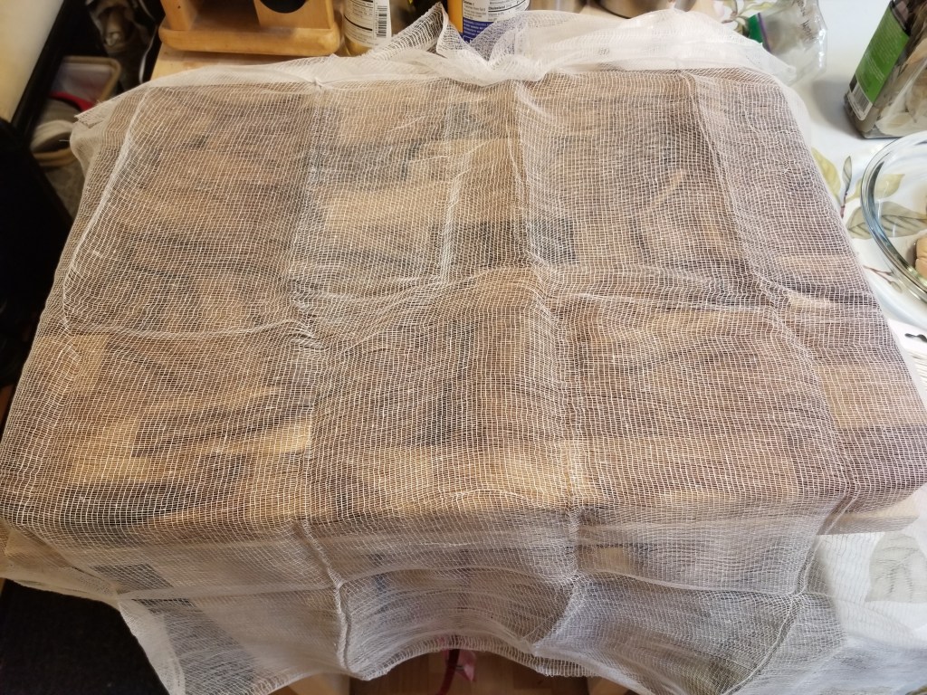 - Measure out the cheesecloth and cut to size, make sure there is enough to wrap up the stock ingredients.