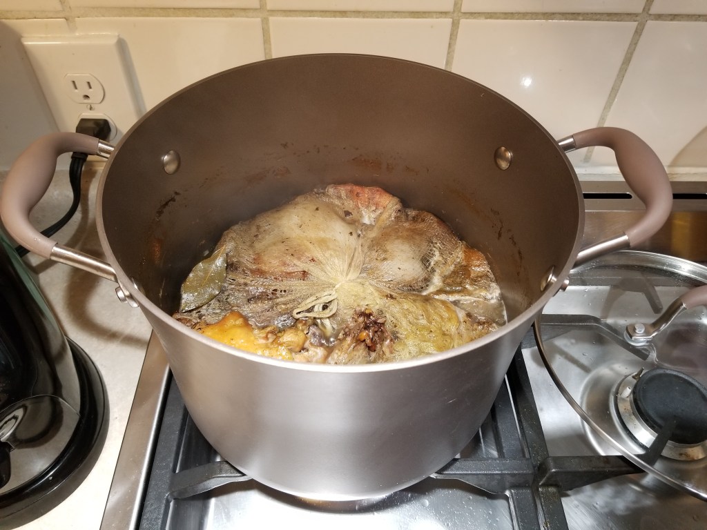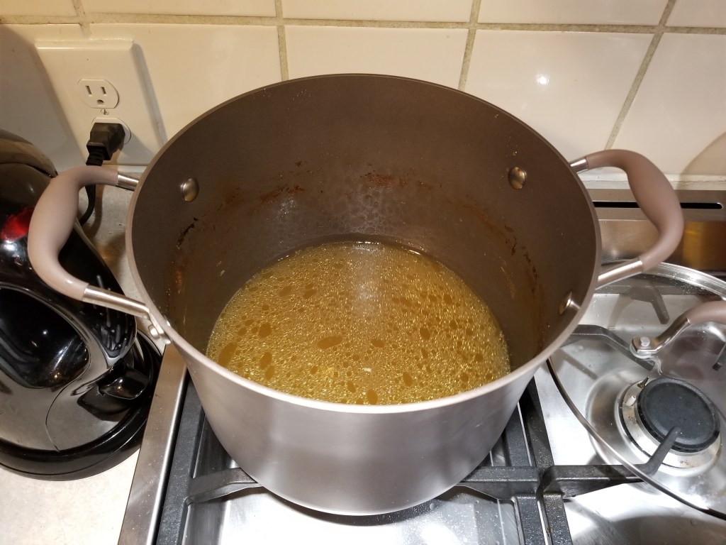 7. Simmer broth for 3 hours, uncovered. Remember to skim the foam as needed.