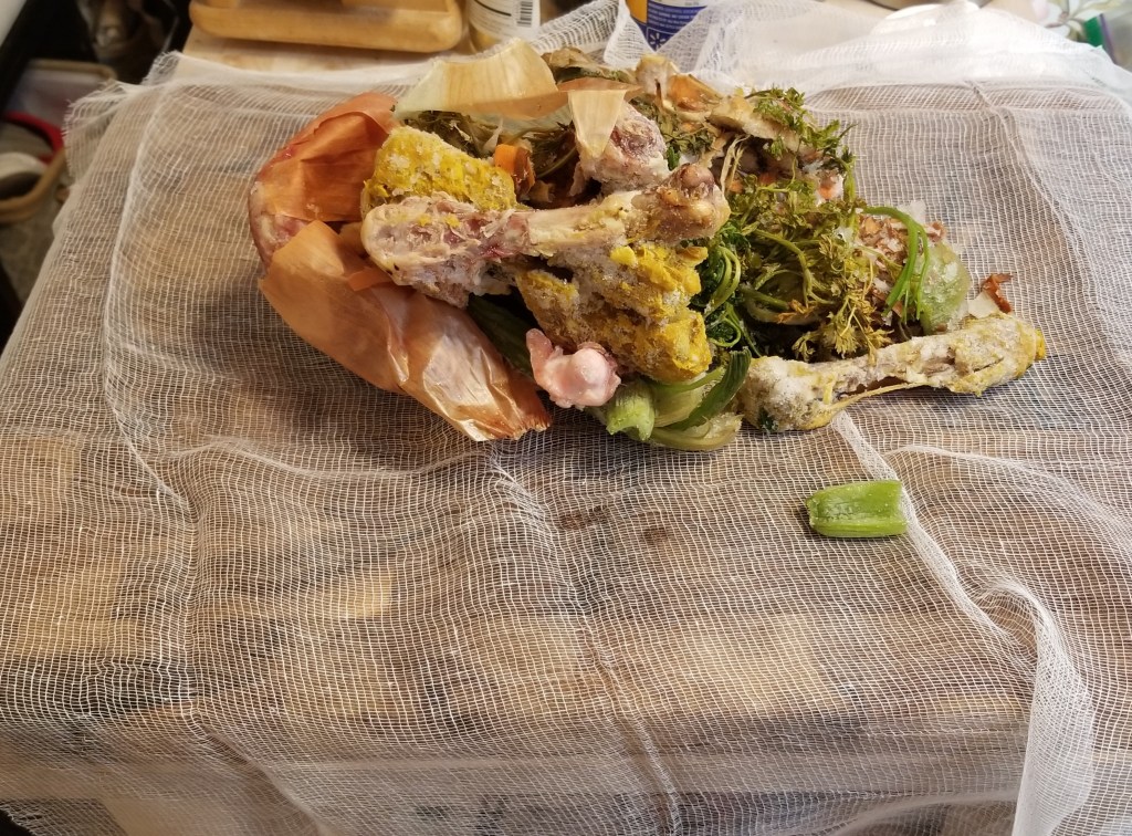 In my house I try to use all the parts of the vegetable, including the peels. In my freezer there is a bag marked “stock ingredients” and many of my vegetable peels end up in that bag, if they do not go to the compost. The best type of vegetable scraps for chicken broth are onion skins, carrot peels, and celery ends. Also, after I have chopped up and used the leaves of a bunch parsley or thyme I throw their stems in the stock ingredient bag as well.