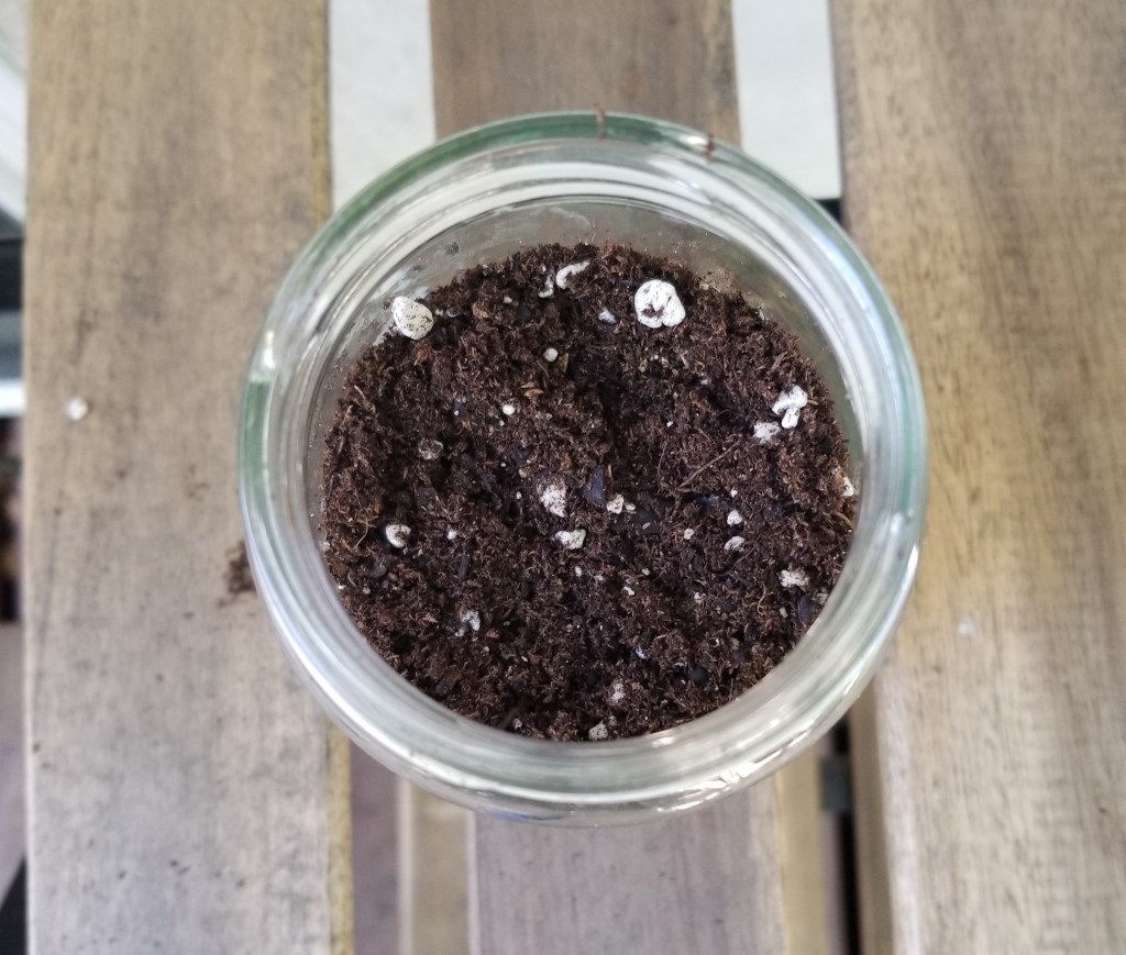 3. Add potting soil until the jar is filled 2/3 of the way.