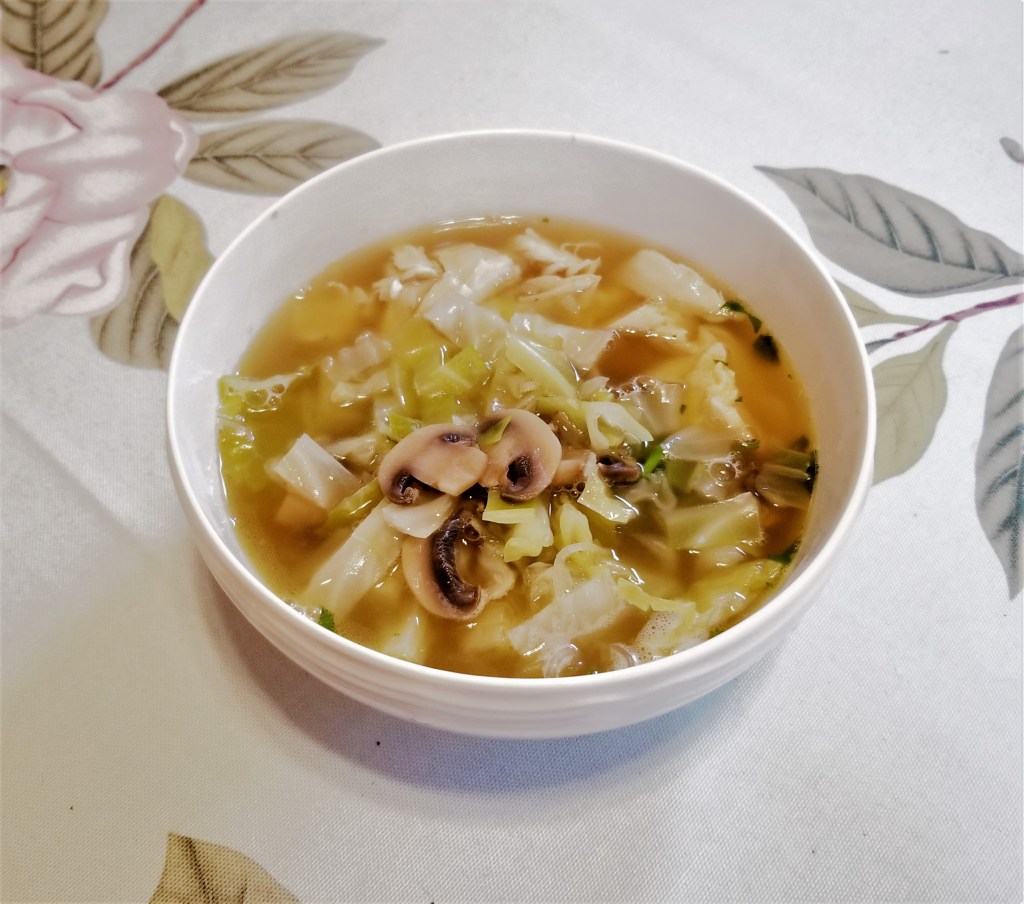 Add the mushrooms and cabbage to the pot. Reduce the heat to simmer and cook for 5 minutes.