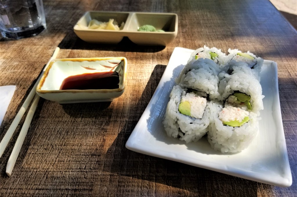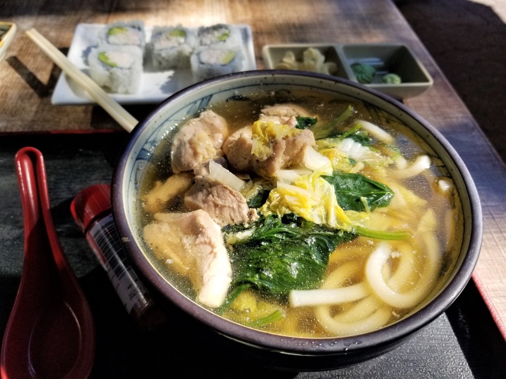 One one visit I ordered a California roll and the Chicken Udon Soup. The California roll had creamy crab and luscious avocado wrapped in seaweed and rolled in white rice. It was a very delightful bite!