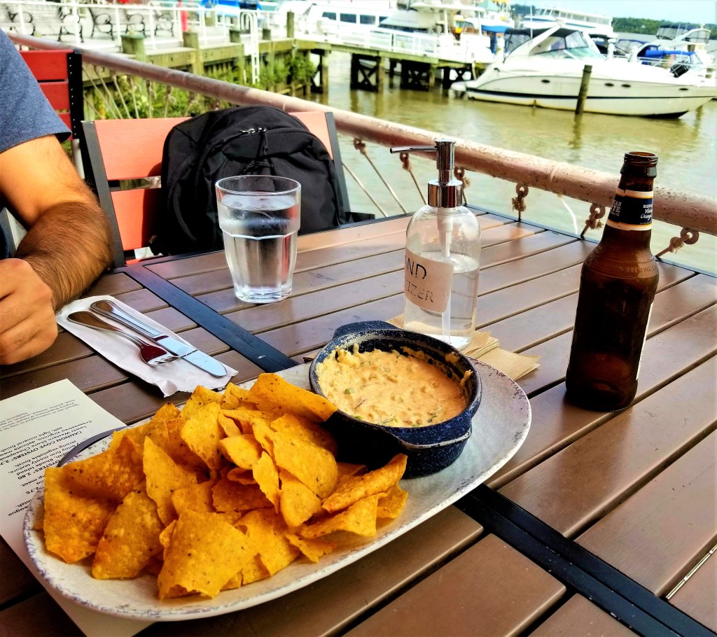 My husband, dog, and I went to visit Vola’s Dockside Grill for a weekday lunch. They were very COVID-19 conscious. All the staff wore masks and all the servers had on gloves. Each table was given a large bottle of hand sanitizer for patrons to use. We used a QR code to access the menu with minimal contact.