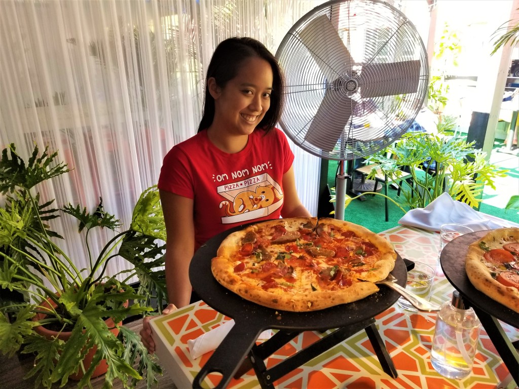 My husband, one of my best friends, and I had lunch at Lena’s Oasis not long ago. Lena’s Oasis is an open air restaurant annex located on the top floor of the Yate’s Corner Parking deck behind Lena’s Wood-Fired Pizza & Tap restaurant. It is a very creative way that Lena’s has been able to adapt to the current COVID-19 restaurant restrictions. Lena’s Oasis has been around for a few months and it acts as a calming, relaxing place for people to eat outside. The outdoor dining area features all the menu items from Lena’s Wood-Fired Pizza & Tap as well as beer, wine, and specialty cocktails.